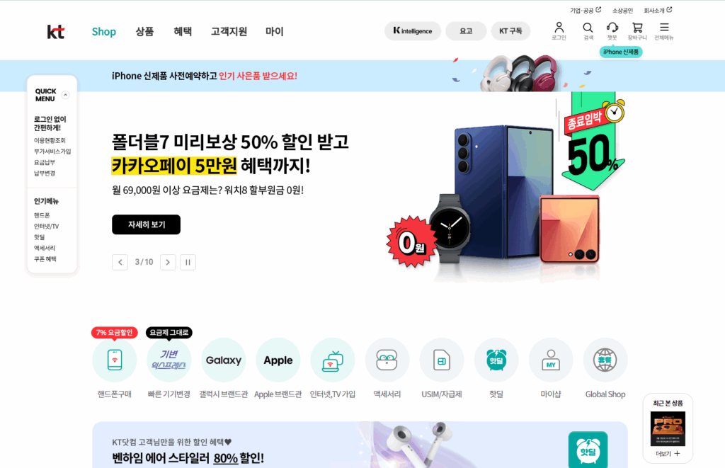 ● 현재는 KT 고객센터 전화 신청만 가능 (080-000-1618)